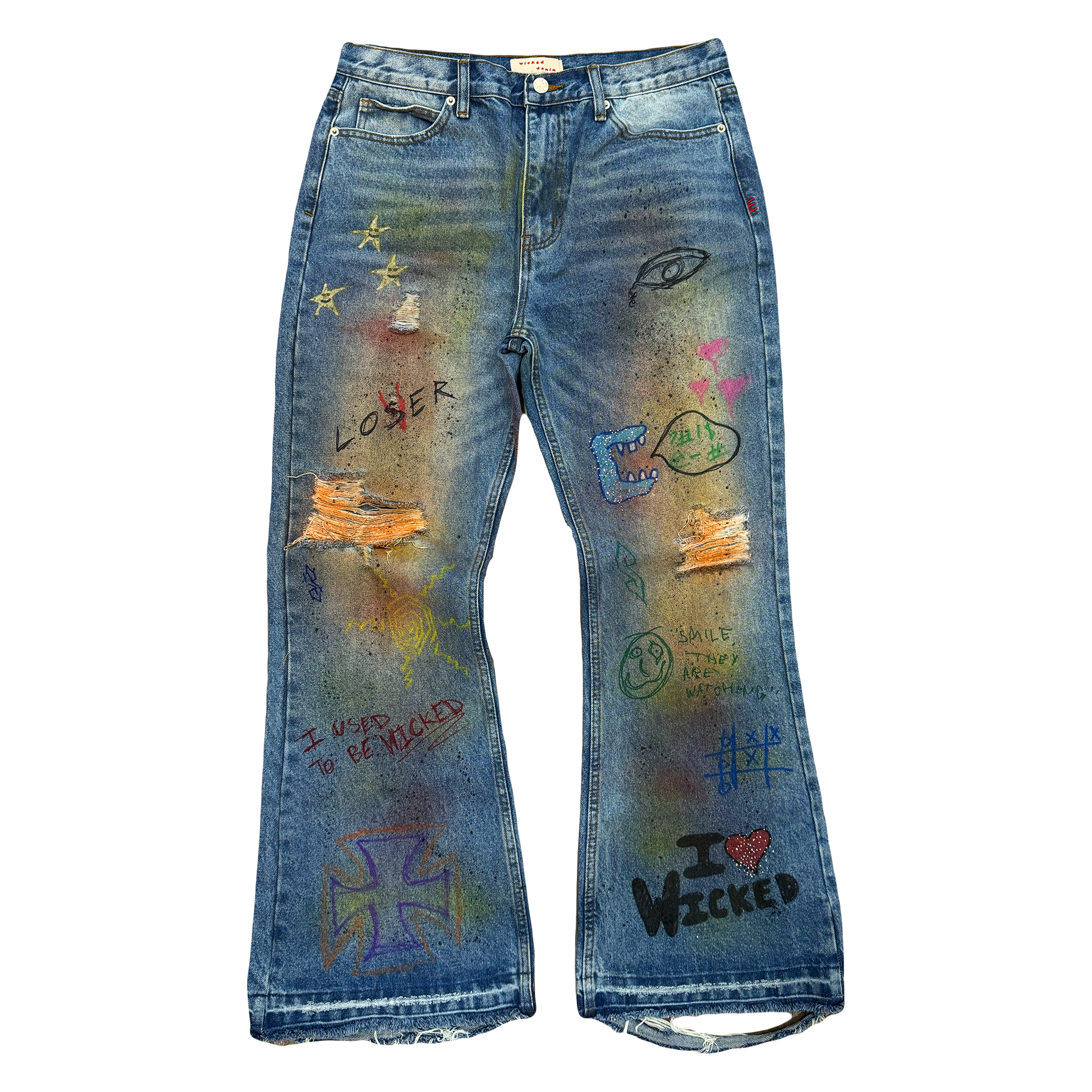 • Features: rhinestone details, graffiti wash, etc.
